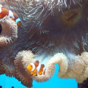 Domáca turistka sa 3x fotí s K pri akváriach. Majú tu aj bazénik, kde sa možno zverov dotýkať, no vidíme len nevábne podkovovité kraby. Podľa obrázkov tu mali kedysi aj žraloka, no ten asi niekomu odhryzol prst, tak ho dali do vedľajšej sušiarne na rolky.