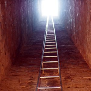 Excitovaní z nevídaného ideme na záhadný Komín. Teórie, na čo ho postavili, sa rôznia. Asi to nebol komín, lebo to nie je začudené a ani vetracia šachta, lebo to nie je na nič napojené. Na maják to tiež moc nevyzerá. Je dosť možné, že to bol jednoducho pomník, alebo demonštrácia rozmaru pracháča.