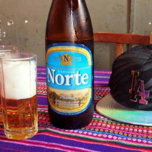 Keď sme dorazili do dediny, nemali sme už ani kvapku vody, ale mali sme pre zmenu dosť. Tak sme si si namestí v rámci pitného režimu dali pivko. Liter tu stál 30ARS, i keď som im dal prázdnu fľašu zo Salty. Toľko stojí pivo v reštauráci s obsluhou a pohármi. No aspoň, že môžeme z tiena obdivovať krásnu malú lamu a popri nej pekné, no nie až také elegantné jahňa.
