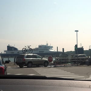 Posilnení pokračujeme do Klaipédie. Navigácia nás smelo odvedie do prístavu, kde za 11.85EUR ide trajekt na polostrov Curonian Spit. Nebolo sa ani kde otočiť ani nič. Keď K kúpi kvas a navigácia zahlási „Take a ferry” už len zostáva dúfať, že tu ma jú kempovacie potreby – hlavne teda jedlo a vodu.
