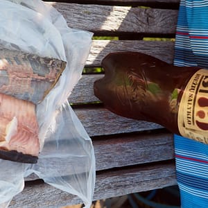 Cesty sú celkom fajn, no postupne ako sa prepracovávame do delty rieky Nemuno, ideme stále po užších a miestami dosť dobitých cestách. V delte končíme v dedinke Rusné. Majú tam jeden obchodík s nakladanými a údenými rybami, prekvapivo veľkým výberom piva, potravinami a potrebami pre domácnosť. Informácie sú ako vždy zavreté. Berieme teda pivo na pláž ku rieke. Haluz je, že plechovky majú objem imperiálnej pinty, teda 568mL. Fľaše sú niektoré pollitrové, no niektoré vysoké atypy sú zase pintovej veľkosti. Každý výrobca má aj pšeničné nemeckého alebo francúzskeho/belgického typu. Pri rieke si sadneme do piesku v tieni stromu a odvážnejší sa idú okúpať do vody. Breh zdobia ryby upletené z prútia nastoknuté na dlhých paliciach. Je tu celkom fajn, lebo je už pracovný deň. Ku koncu našej obednej prestávky ale začnú prichádzať kúpaniachtivé deti zo školy.