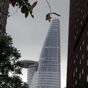 Prechádzame cez rieku, ktorá oddeľuje starý Sajgon od modernejšieho zvyšku HCMC, ideme okolo letiska a bytovkových vežiakov s veľkými nápismy GYM a CAFFE na strechách. Hovorí, že toto sú také luxusnejšie byty, dvojspálňové za $45tis. Luxus je už to, že rodičia a deti majú oddelenú izbu. Vysnívaný vietnamnský luxusný mestský život.