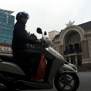 Na motorke sú často aspoň dvaja a cesta vyzerá ako more ľudí v prilbách, hlava/prilba na hlave. Je to fascinujúce a pri každej veľkej križovatke sa nad tým pozastavujem, ako tá masa ľudí zhustne a potom na zelenej sa to trošku rozťahá. S autami by sa sem ani nepomestili, určite nie desať dvanásť vedľa seba na dvojprúdovke.