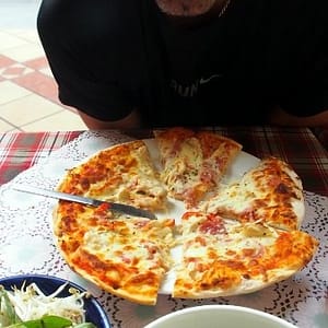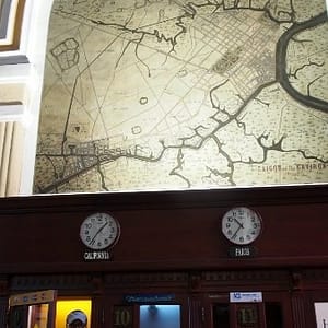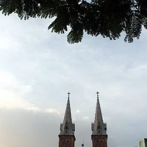 Ozývajú sa tráviace problémy, tak beháme okolo tržnice a vyhliadame toaletu. Nakoniec zapadáme v parádnom mrakodrape, kde K využíva čakací čas obzeraním obchodov. Cestou ďalej objavíme uličku s foto obchodmi, kde skúšame zistiť, či by nám opravili foťák. Veľa obchodov má priamo v priestoroch opravovňu. Neklapne to a nepodarí sa nám ani kúpiť obal. Jeden maník sa ho už chystá rozmontovať a po 30 opýtaní sa na cenu zoberie kalkulačku a suverénne zaťuká čislo 200, vysvitne že dolárov, tak sa porúčame. Zastavíme sa v obchoďáku, kde majú na prízemí parfumériu a veci ako v Nemecku, ale potraviny sú tam biedne a voda dokonca drahšia ako na ulici. Dole ale majú pekné voňavky v porcelánových flakónoch tvaru ženy s typickými klobúkmi jednotlivých regiónov Vietnamu. Sme už dosť hladní a tak si pred Notre Damom kupujeme ryžovú polievku za 20.000 D. Keď vidíme aké nerastlinné veci nám tam milá teta od pojadznej vývarovne chce dať – niečo čo vyzeralo ako surová slanina, tak ju ukecávame, že ‘no meat’ – bez mäsa, tak pridá niečo ako posúch. Sadneme si na obrubník s výhľadom na červený kostol a hútame, či v parádne vyzerajucej budove na strane námestia nie je nejaká tržnica, kde by sme dostali fajnovejšiu papkačku. Chodí tam kopa ľudí. Dokončíme pekne polievku a ideme sa tam kuknúť aj my. Heh, dobre, že sme si dali polievku, lebo milá budova je centrálna pošta navrhnutá samotným G. Eiffelom. Máme už dosť, tak si pozrieme omšu v kostole, kde používajú monitory s videom a textami ako na karaoke, zoríentujeme sa podľa navigošky a poď ho na hotel. Suši ešte nie je a mám chuť na zmenu, tak končíme v mexickom podniku na rohu na pizzu, kde boli baby prvú noc. Pizza je drahá ako sviňa a pivo ako tri svine ale dá sa. Dopisujem denník.