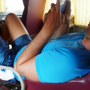 V cestovke sedíme a čakáme na bus, ktorý mešká už dobrých 20min. Sme svedkami toho ako si traja prišli požičať auto – SUV, no nejde naštartovať, pánko majster tvrdí, že to nie je problém a pokúša sa ich naučiť ako naštartovať vozidlo priamo a vysvetľujúco šmátra v otvorenej kapote. Bieli sa boja, že by sa im to stalo v poli (samozrejme podľa majstra nereálne) a tak celú vec zrušia a neskôr ich cestou do Vietnamu vidíme v tuk → tuku na trase, ktorú sme robili včera na mopede.