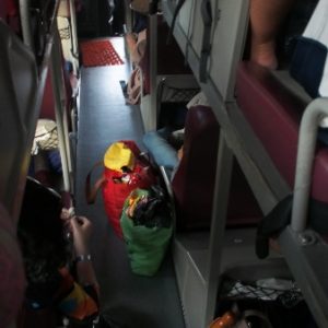 Autobus z času načas zastaví na cikpauzu, raz vo velikom reštauračnom zariadení, kde pomáham mladíkom odtlačiť pult a mám pocit, že to tlačím aj s nimi. Kúpime si nejakú zvláštnu sladkosť z duriamu, arašidov a kokosu a keď vidíme, že írky jedia tak si objednáme aj mi to isté (rezance so zeleninou) a prvé vietnamské pivo – 333. Dorazíme na stanicu v HCMC, ktorá je ešte 10.4km od cieľa. Okolo je ale mraky taxíkov a chceme zdieľať s Írkami tak sa moc neponáhľame. A dobre sme spravili. Odrazu kde sa vzala, tam sa vzala príde ženská v uniforme a naženie nás do menšieho autobusíku. Pýtam sa, či ide tam kam chceme a je to v cene, ona čosi melie, K tvrdí že určite hej, ale nemyslím, že nám pani čokoľvek rozumie. Je ale veľa hodín a horšie to snáď nebude, tak poslušne nastupujeme, stratili sme len dve baby, čo boli moc akčné a odhrmeli na motorkách. Sledujem cestu na navigoške, blížime sa k cieľu ale končíme 3.3km od neho a musíme vystupovať. Smola, ale lepšie ako nič. Tak berieme taxík, parádne veľké auto, nejaká Toyota 7miestna. Štyria sa tam v poho zmestíme, nahádžeme vaky a za $3 dokopy ideme. Vyhodí nás na hlavnej ceste, zapadneme do prvej uličky naľavo a zháňame ubytko. Je už po 23:00 ale je tu poriadne hlučno. Piatok večer v plnom prúde. Hľadáme ubytko, ale ceny sú privysoké. Na konci obdivujem suši stánok s parádnymi fľaksňami lososa a zachytím češtinu. Tak sa pýtam na ich hotel. Traja platia za izbu $35. To je vysoko nad náš priemer tak dokončíme uličku a zahneme do ďalšej, kľudnejšej. Tam začíname na $12 a K ide pozrieť izbu za $10, ktorá síce nemá vlastnú kúpelku, ale je na prízemí, studená, pomerne veľká, nesmrdí a má klímu, chladničku a telku, tak to bereme. Írky majú tiež za $10 aj so sprchou, ale na 5tom poschodí. A tu v Sajgone veru výťahy moc nefičia. Takže majú rozcvičku až až. Rozlúčime sa, lebo sme dosť učerpaní, že pôjdeme na raňaky o 09.00. Po sprche zbehneme ešte na suši, dáme si po dva kúsky z lososa a tuniaka a ideme spať.