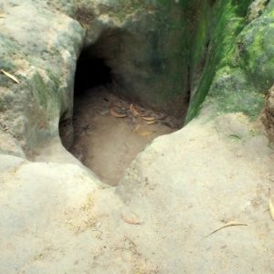 Ideme teda na kraby a bum, že $10 za kilo. A už sú aj navážené – 8ks. Cena sa nám ale nepozdáva tak ideme ďalej, kde nešpekulujú a navážia nám kilo za $5 a varenie kila za 2000R. Tak sledujeme cestu našich krabov až do veľkých hrncov na čmudiacom ohni. Teraz konečne chápem, na čo sú tam tie hrnce. Keď vidím aké je to naše kilo malá kôpka, tak nechápem, že ľudia kupujú čo vyzerá byť 4 až 10kg do červena uvarených krabov. Surový krab má tmavé,hnedé farby, nohy a obrysy sú do modra. Keďže máme defekt tak si berieme kraby v sáčku a drinkami so sebou a tlačím moped smer cestovka. Pristavujú sa taxíky, že nás zoberú, jeden dokonca volá do cestovky, že či nás má zobrať. Keď sa ho spýtame, že kto to cvakne, že asi cestovka, no neznie moc presvečivo. Ideme okolo opíc, ktoré sme tu nikdy nevideli a zrazu počujem ako K vreští. Otočím sa a K sa sťažuje, že jej opičiak vyskakoval na kraby a nepekne pri tom ceril zuby. Mieša sa vo mne pocit bezradnosti, lebo ledva tlačím moped po slnku a som aj pobavený zo situácie. Nakoniec sa ku K nevôli začnem rehotať a odpúšťam tak trochu pary. Keď som už dosť spotený a obitý od šlapákov, ktoré sa nedajú zaklopiť naštartujem, no hneď cítiť defekt a necheme mať ešte ďalšie opletačky s cestovkou pred odchodom, tak to dotlačím až do cestovky. Pani je prekvapená, K z jej reakcie pekne nasratá, ale získame pas a ideme jesť naších krabov. K objedná ryžu a omeletu a baštíme a baštíme až do konca. Cestou to cestovky ešte K nakúpi vodu a zamení posledné peniaze za USD.
