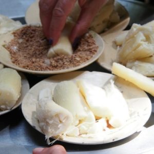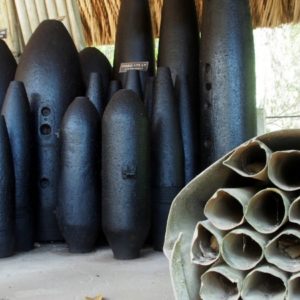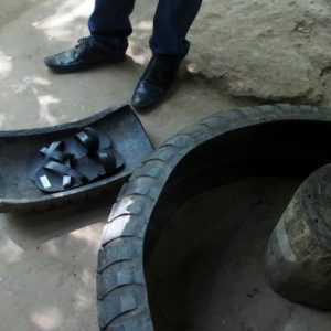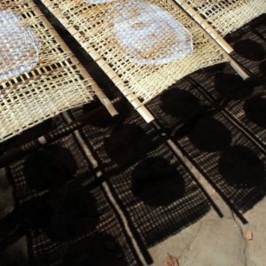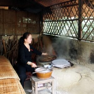 Ideme ku strelnici. Guľky stoja od 35.000D ($1.75 – najlacnejšia do Kalašnikova) vyššie, a jednu zbraň môžu zdieľať aj dvaja. K to moc nezaujíma a ja som taký rozpoltený, tak si kúpime dve grilované kukurice a chvíľu relaxujeme. Ako sa zhrčujeme pred strelnicou, máme ešte možnosť sledovať, ako sa robí ryžový papier (jedlý). Pani nalieva ryžovú tekutinu na veľkú rozpálenú platňu, na chvíľu to prikryje, potom namotá na valček obalený do uteráka a nalepí papier na bambusový rošt na sušenie. Na jeden rošt sa zmestí 5 kruhových papierov veľkých ako palacinka. Usušené papiere majú bambusovú mriežku otlačenú zjednej strany.
