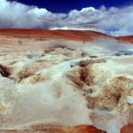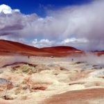Gejzír moc nepresvedčil. Strašne fúka a tak sa para z diery nedostane moc vysoko. A ani sa cez ňu nedá skákať, tak ako sme videli na fotkách, lebo keby sa vietor zmenil, mohlo by nám (hlavne teda mne ako hlavnému skákajúceku adeptovi) to celkom priškvŕknuť gate 80C horúcou parou. Popozeráme zopár dier, v niektorých je bublajúca voda, z iných – aj maličkých ide para. Vo veľkých buble šedé bahno. Na mieste, kde budeme spať = Huaylljara 4340mnm sme vyhodili kuchárku a vaky, ubytovali sa a šli na plameniaky.