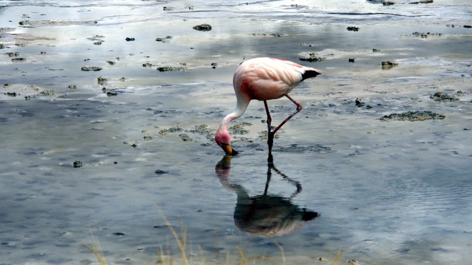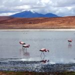 Cestou ideme okolo Piatich jazier, pri niektorých sa zastavíme a obdivujeme plameniaky. Na niektorých jazerách sa k nim dostaneme skutočne blízko a snažíme sa nejakým spôsobom rozlíšiť tri druhy, čo tu majú. Ale vyzerá to len na andské a Jamesove. Čilské moc nevidíme.