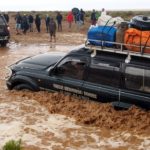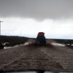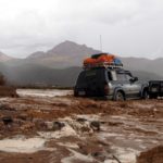Prídeme k rieke, ktorá sa dažďom rozvodnila. Na druhej strane už stojí gazík a postupne pribudnú tri. Na našej strane sú tri posádky – autá čo sme šli spolu celý deň. Naša nálada razom opadne. Bojíme sa, že to budeme musieť otočiť a nebudeme spať v soľnej pláni. Šofér ale po pár minútach behania v daždi oznámi, že počkáme 30 minút a prejdeme. Že voda opadne. Zrazu šofér prevažne francúzskej posádky zavelí nasadať, vbehne do rozbúrenej rieky a zostane zapadnutý tak, že ho dve hodiny vyprosťujeme. Je to veru akcia Z. Židovská posádka si sedí v suchu autíčka, spolujazdec hrá na gitare, na mieste šoféra spieva taká brutálna moletka, že to taká určite v armáde nemohla byť. Šoféri z druhej strany vynosia posádku zo zapadnutého auta. Chaloši vhupnú obutí do vody, baby a HongKongčana vynesú na chrbte. Ani gazíky z druhej strany ba ani privolaný traktor nedokážu auto vytiahnuť.