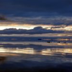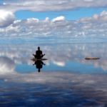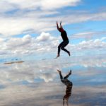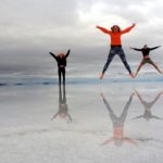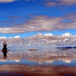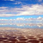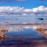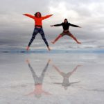 Zavčasu vstávame do Muckových narodenín. O šiestej už naraňajkovaní a naložení uháňame smer Salar. Máme veľa oblakov, ale aspoň sú pekne ružové od východu. K cíti tortu, tak ju ubezpečujem, že to bude určite len nejaký dezert, i keď viem, že je to pre ňu, lebo beťár Gruber mi včera po jednom pivku spiklenecky pošuškal do uška, že jej robia niečo. Zastaneme na konci cesty uprostred vodou zaplavenej pláni. Už sú tu tri autá. Fotíme ostošesť. Tenká vrstva vody na slanej platni pri bezvetrí vytvára zrkadlo. Oblaky na horizonte sa na tejto vode zrkadlia a vytvárajú horizontálne symetrické obrazce. Pripomína mi to fraktály. Mám ale len foťáčik s pevným ohniskom a nedá sa mi zúmovať, tak zosávam pri fraktáloch. Oči to vidia trochu lepšie, vedia jemne priblížiť. Je to magické. Trochu som sklamaný, že sme skončili tak zavčasu. Kúsok od brehu. Mal som už aj vyzuté nohy, že tam vbehnem. Zrazu posádky troch gazíkov pred nami naskáču do áut a poďho do vody. Úaú. Tak to je super. Snáď to spravíme aj my. A veruže sme aj spravili. Aby nám super slaná voda neužrala podvozok za jazdy, ideme len decentných 20 až 30km za hodinu, podľa hĺbky. Jeden gazík sa oddelí od skupiny pred nami a vytvára haluzné zábery na našom pravoboku. Foťáky cvakajú, baterky sa míňajú a my sme jednoducho uchvátení. Aj si s Katkou meníme foťáky, lebo ona má skôr kopce a ja skôr len fraktálové oblaky. Trochu mi vadí, ako auto pred nami čerí vodu a kazí perfektné zrkadlo na moje fraktálové zábery, tak pobádam Grubera, aby to šibol viac napravo, preč z vlniek.