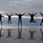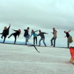 Okolo ôsmej prídeme k ostrovčeku a jedno auto to tam zapichne. Naše dve autá zaparkujú na vedľajšom ostrovčeku. Tých tu veru vôbec nie je veľa a nechápem, ako to tu vôbec našli. Tu už ale úplne bez zábran dávam dole tenisky aj ponožky a poďho do ľadovej slanej vody mimo ostrovčeka. Je čas na fotenie a i keď bosý, poriadne sa do toho obúvam. Skáčem v plytkej vode aby ma K odfotila vo vzduchu, ale aj tak som zamočený až po hruď. Nevadí mi to, nie je až tak zima. Slnko celkom fajne hreje cez husté oblaky. Problém nastane, keď voda obschne a po kvapkách zostanú soľné stopy. Vyzerám ako soľný leopard. Zo začiatku je mi zima na nohy, potom už zimu vôbec necítim. Ale uvedomujem si, že chodidlá treba poriadne vysušiť a čo najlepšie prehriať.