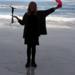 Ani sa to cez tie oblaky nezdá, ale dosť pripeká. Zase sme sa raz zabudli natrieť. Zbadáme sa, až keď slnko cítim na líčkach. Fotili by sme aj dlhšie – nápady síce dochádzajú, ale niektoré sa dajú ešte pozlepšovať – no babám, ktoré nemohli len tak prifarbiť soľ sa už chce strašne cikať, tak vyrážame. Nedočkavo sledujú horizont, kedy sa už konečne vynorí WC. Gruber hovorí, že aby vydržali až do mesta – Colchani, lebo tam, že sú WC lacnejšie. Myslím, že už sme za hranicou šetrenia za WC, no na neštastie WC na soľnom hoteli nefunguje. Tak v chvate pofotíme posledné zábery pláni zaliatých vodou a poďho do mestečka na WC.