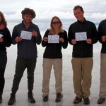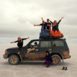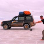 Ledva zjeme polku torty a ide sa ďalej. Šofér nám hovorí, že ešte len bude miesto na loco foto – bláznivé fotky. Pýtal som sa ho, či sa dostaneme aj na suchú soľ, no tváril sa, že nie. Moja španielčina je predsa len dosť limitovaná, čo sa ukáže neskôr, keď 60kou uháňame po suchej soli. Aj tu, rovnako ako pod vodou robí soľ šesťuholníkové obrazce, no nie tak pravidelné ako usilovné včeličky v úli. Znenazdajky auto pred nami urobí veľký oblúk a vráti sa k autu za nami. Šofér sa snaží zistiť, čo sa deje, ale nakoniec sa ukáže, že robíme stopku na fotenie. Vybehnem trochu prisoliť a zafarbiť soľ a K ma vyháňa ďalej a ďalej od gazíkov. Je to fajn, nikto ma nevidí, no keď sa vraciam vidím prifarbovače dvoch Izrealcov, ktorí už tiež nemohli vydržať a nikto ich nehnal tak ďaleko od áut. No i tak dobre urobili, lebo sa to oficiálne nemôže a zastávka je dlhá a po raňajkách žiadna cikpauza nebola. To sa nakoniec ukáže ako najslabší článok dnešného dňa.