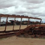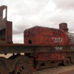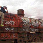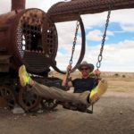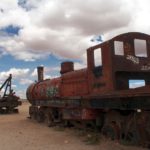 Zastaneme ešte na benzínke, kde si rozmeníme peniaze na tip pre šoféra a kuchárku a po pár minútach sa brodíme Uyuni. Za mestom navštívime cintorín mŕtvych parných lokomotív, ktoré kedysi vozili striebro do Čile a teraz tu len tak ledabolo hrdzavejú a nechávajú sa pomaľovať grafiťákmi. Na jednej je spravená aj hojdačka. Na zemi pred autami si dáme posledný spoločný obed, vymeníme si emailovky, tipneme našu posádku a poďho na stanicu.