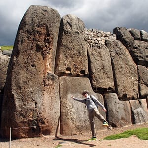 Pre nás je na obed je ešte priskoro, tak vybehneme na vyhliadku nad mestom a pochutnávame si na čerstvom ananásovom kompótiku jemne říznutom rumom. Je to dobrá finta, lebo strážnikovi si to javí ako piknik. Keď to celé konzumujeme, vytiahneme si naozajstný piknik a v tieni si pochutnávame na miestnom syre, avokáde, rajčinke a čiabatkách. Pokračujeme prehliadkou ruín. Tie sú skutočne rozsiahle. Pokrývajú celý kopec nad mestom a míňame 70tonové kamene, ktoré tvoria rohy múrov. Sú neskutočne veľké. Toto je podľa nás asi najväčší komplex Inkských ruín. Je to masívne a aj štýl stavania múrov sa mi páči. Na niektorých miestach to vyzerá tak, že najprv spravili múry z malých kameňov a potom to obkladali väčšími. Je aj super, že sme neskúšali iné ruiny ďalej od mesta. Tieto nám na pohodovú nedeľu úplne stačili. Jedine nám chýbalo vínko ku syru. Keby som vedel, že to je fakt tak blízko, tak zoberieme od dedka krabicové.
