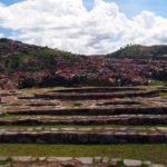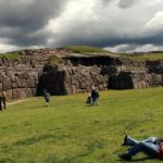Pre nás je na obed je ešte priskoro, tak vybehneme na vyhliadku nad mestom a pochutnávame si na čerstvom ananásovom kompótiku jemne říznutom rumom. Je to dobrá finta, lebo strážnikovi si to javí ako piknik. Keď to celé konzumujeme, vytiahneme si naozajstný piknik a v tieni si pochutnávame na miestnom syre, avokáde, rajčinke a čiabatkách. Pokračujeme prehliadkou ruín. Tie sú skutočne rozsiahle. Pokrývajú celý kopec nad mestom a míňame 70tonové kamene, ktoré tvoria rohy múrov. Sú neskutočne veľké. Toto je podľa nás asi najväčší komplex Inkských ruín. Je to masívne a aj štýl stavania múrov sa mi páči. Na niektorých miestach to vyzerá tak, že najprv spravili múry z malých kameňov a potom to obkladali väčšími. Je aj super, že sme neskúšali iné ruiny ďalej od mesta. Tieto nám na pohodovú nedeľu úplne stačili. Jedine nám chýbalo vínko ku syru. Keby som vedel, že to je fakt tak blízko, tak zoberieme od dedka krabicové.