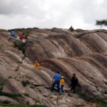 V strede komplexu sú šmýkaľovo vyzerajúce skaly a naozaj, kúsok ďalej sa na nich decká šmýkajú. Tipujem, že tie gate zoderú za dva víkendy. Dvíha sa studený vietor, tak nasadíme vetrovky a zberáme sa späť.