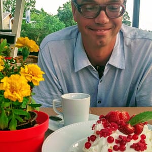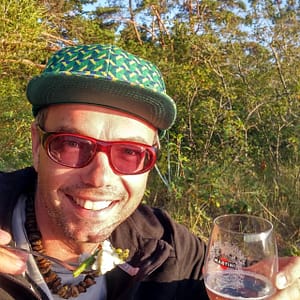 Po sobotnom kroasantíku a kafe z obchodu (pekanové orechy na lístkovom ceste) ideme bajkom na odľahlú pláž. Je strašne teplo – predpoveď 31 stupňov sa 12.08. naplnila, máme dosť. Musíme sa zastaviŤ v obchode na nanuky a chladené drinky na schladenie. Kupujeme famózne údené kura a lososa a obedujeme v lese nad plážou.