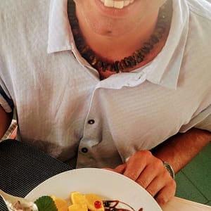 Na obed a prácu fičíme do SaltWater. Z jedla nie sme až takí unesení ako zo včerajšieho dezertu. Všetci lokálni si dávajú menúčko (Kompleto za 3,9EUR), my sme platili normálne ceny z menu.