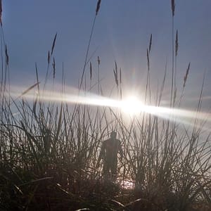 Na parkovisku prípravujeme obed (mrazené šrimpíky) a trochu pracujeme. Potom už len plážovanie v dunách, kde sú v piesku krásne trávové ostrovčeky. Zatmenie mesiaca sa nekoná, ale západ slnka je magický. Večer čo večer lokálny výber mládeže prichádza na naše parkovisko chlastať alebo sa kúpať po tme.