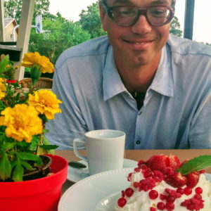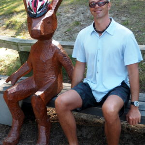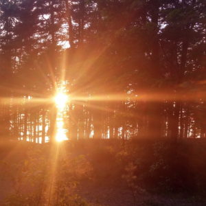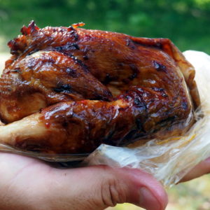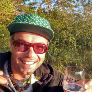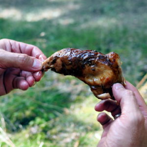 Po sobotnom kroasantíku a kafe z obchodu (pekanové orechy na lístkovom ceste) ideme bajkom na odľahlú pláž. Je strašne teplo – predpoveď 31 stupňov sa 12.08. naplnila, máme dosť. Musíme sa zastaviŤ v obchode na nanuky a chladené drinky na schladenie. Kupujeme famózne údené kura a lososa a obedujeme v lese nad plážou.