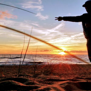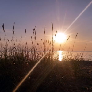 Na parkovisku prípravujeme obed (mrazené šrimpíky) a trochu pracujeme. Potom už len plážovanie v dunách, kde sú v piesku krásne trávové ostrovčeky. Zatmenie mesiaca sa nekoná, ale západ slnka je magický. Večer čo večer lokálny výber mládeže prichádza na naše parkovisko chlastať alebo sa kúpať po tme.