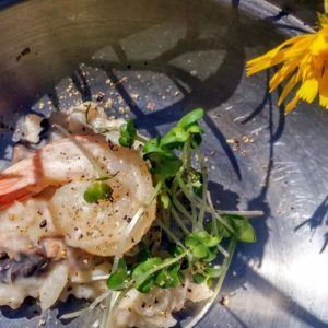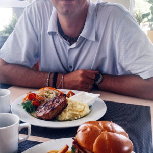 Na obed a prácu fičíme do SaltWater. Z jedla nie sme až takí unesení ako zo včerajšieho dezertu. Všetci lokálni si dávajú menúčko (Kompleto za 3,9EUR), my sme platili normálne ceny z menu.