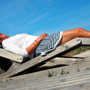 Navštívime Bielu Dunu, Katarínine Lipy a na neskorý plážový obed nakupujeme nákyp so sleďmi, majonézovým šalátom a červenou repou. Večeru už varíme na pláži, je mega teplo. Na padákoch v západe lietajú paraglajdisti a malý divný vrtuľník, do ktorého sa nezmestí ani jedna osoba. Uvažujeme že lokálny majú úplne iný čas, keď s deckami chodia po západe do vody – okolo desiatej večer.
