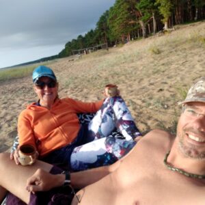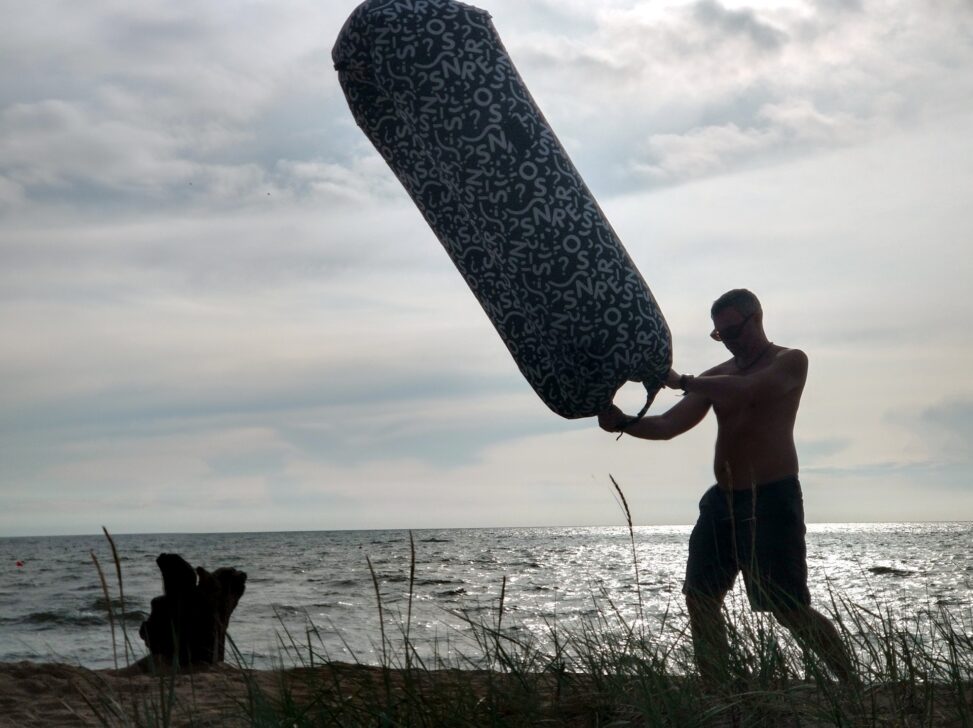 Večer v presile plážových múch márne čakáme na západ na našej pláži. Miestna mládež žúruje dlho do tmy, ale sme tak unavení, že to ani nevnímame. V noci sa budíme 2x na dážď a až okolo obeda 11.8. vidíme slnko. Plážová nedeľa je božská. Takú plnú pláž sme ešte nevideli, ale tu na 17km je miesto pre všetkých. Nájdeme si bez problémov vlastný pieskový ostrovček na dune. Voda je príjemná, plytčina je fajne prehriata. Obedujeme ryby naložené v citróne s nejakými lokálnymi bobuľkami, prekvapí nás šalát so zapracovaným nakrájeným rezníkom. Na dezert vyberáme bajky a frčíme do Salt Water. Pavlovu nemajú, optujeme preto čokoládový dezert. 12.8. nám už ale nevýjde obedné menúčko, čašníčka je akási romrzená. Navigácia nás do Jurmaly vyrútuje cez Rigu, je celkom špička. Po zaplatení vstupného 2E (pre auto) do zóny a nákupe váženého kaviáru v Rimi supermarkete chceme zaparkovať na známom mieste pri pláži, ale už sa tam vo veľkom stavia. Nechávame teda Sharku pre Bistrom Fénix a odhodláme sa na naše prvé čabureky. Syrový chutí ako poctivý vyprážaný syr, jahňacinový je tiež dobrý. Pánko je v etnickej čiapočke pravdepodobne Uzbekistanu a od piky robí celý proces. Pláž je nekonečná a stále magická. Je oveľa širšia ako kdekoľvek inde. Voda je dlho plytká, celkom chápem tie vtipy, že má človek pocit, že prejde až do Švédska, kým bude ako tak hlboká.