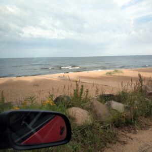 Celú noc s prestávkami prší. Ráno 09.08. porovnávame prognózu počasia na jazere a pri mori. Vyhráva Lotyšsko, bude síce dnes pod mrakom, ale bez dažďa. Keď v dedinskej samoške vraciame plastovky, v chladničke objavíme aj pivko z červenej repy. Tu stojí plechovka 1,49E, v bare na našej dune v Juodkranté stál ten istý objem 6E.