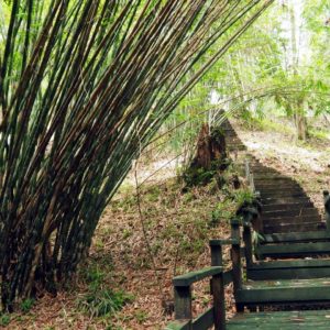 Po skončení predstavenia nás chlapík vyženie a baby nás cestou späť ku vchodu predbehnú, lebo my obzeráme bambusovú záhradu. Sú tam malinké divné bambusíky i majestátne velikánske bambusiská. Keď príde bus, berie nás rovno do mesta, nečaká na plánovaný odchod. Veď aj tak je plný a príde ešte jeden.