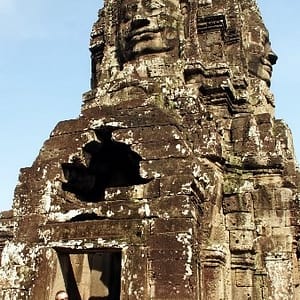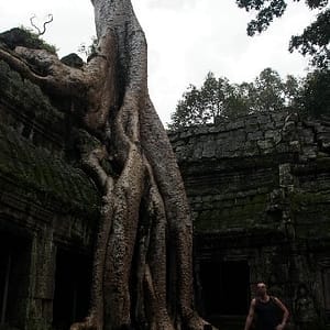 Obehneme 3 najvačšie hity (Angkor Wat, Bayon, Ta Prohn), obedujeme v predraženej turistickej pasci (ale ďumbierová ryba je ňuňu,ňuňu). Na poslednom Tomb Raiderovom chráme dosť prší, tak vyťahujeme vetrovky a beháme po mokrých skalách, že by aj Lara Croft čučala.