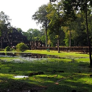 Ráno zase vstávame zavčasu (7.00), ale konečne si zacvičíme jógu, dáme omeletky v supermarkete a objednávame tuk tuk na Angkor Wat. Namiesto manžela šéfky obchodu príde mlaďas (Ratan) a už frčíme ako páni smer ruiny.