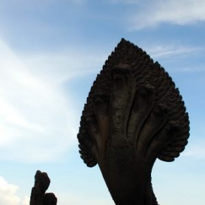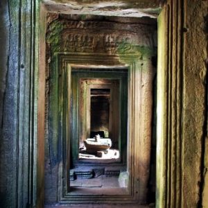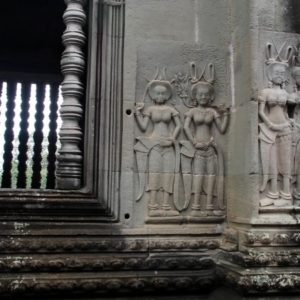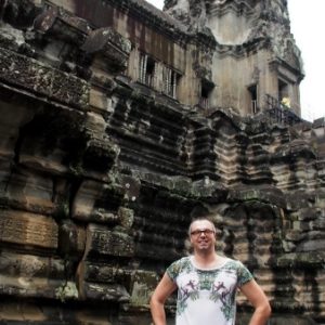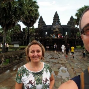 Je dosť neskoro (10.00), nuž ale nevadí. Všetko to je mega veľké, ale pekné, prší nám, ale sme vždy niekde vnútri pod strechou. Na vrchol Angkor Watu ma kôli tielku nechcú pustiť ani so šatkou, tak ide najprv Katka a potom ja ako najvačší gejlord po nej v jej tričku. Vpúšťač sa na mne riadne od srdca rehoce. V opičkovom tričku som bezpochyby neodolateľný.