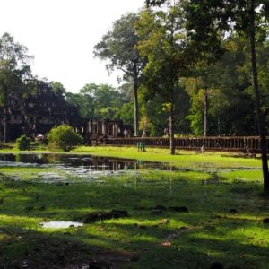 Dnes je ten deň, kedy ideme na bajkoch na ruiny. Počasie vyzerá kadejako, ale riskneme to. Na masáži nám sľúbili bajky zadarmo,tak ideme tam, no majú len dva detské, tak sa presúvame o obchod vedľa ($1/bajk/deň) a po chvíli skúšania vyrážame. Šlapať na bajku je troška menšia sranda ako viezť sa v tuktuku, ale ide to – pomaly.