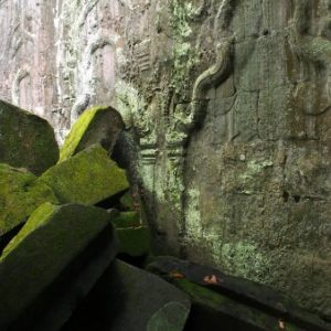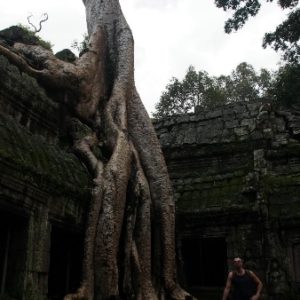 Obehneme 3 najvačšie hity (Angkor Wat, Bayon, Ta Prohn), obedujeme v predraženej turistickej pasci (ale ďumbierová ryba je ňuňu,ňuňu). Na poslednom Tomb Raiderovom chráme dosť prší, tak vyťahujeme vetrovky a beháme po mokrých skalách, že by aj Lara Croft čučala.