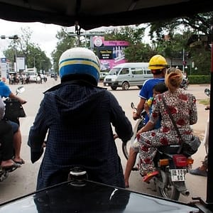 Ráno zase vstávame zavčasu (7.00), ale konečne si zacvičíme jógu, dáme omeletky v supermarkete a objednávame tuk tuk na Angkor Wat. Namiesto manžela šéfky obchodu príde mlaďas (Ratan) a už frčíme ako páni smer ruiny.