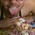 Keď konečne príde ceviche, pivko v tomto teple máme aj v hlave. Ceviche je ale super, sú v ňom aj 4 čierne mušle, krevetky a lahodné chobotnice. Skutočne to stojí za tie prachy a úplne nám to dvom stačí. Ako príloha sú sladké zemiaky, opečené kukurične zrná, teplé fazule a juka. Posilnení prvým famóznym ceviche si vykračujeme horúčavou do druhého múzea. Tam musíme všetko odovzdať (nesmie sa tam ani fotiť) a pani do skrinky zamyká aj náš pas s fotkou, aby nás na konci vedeli identifikovať. Asi ak by sme spadli do hrobky medzi všetky tie vykopávky a nevedeli nás odlíšiť.