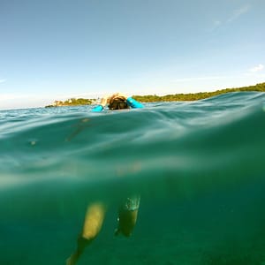 Dostávame sa do príjemnej rutiny. Ranná jóga, najprv mastné vajcové empanády, potom volské oči a čierna káva v záhradke na brale. Potom príde na rad šnorchľovanie. Vo vode to nie je veľká sláva. Ani moc rýb a ani koralu. Navyše keď to začne byť zaujímavejšie, je to už poriadne hlboko. Každý deň ale prináša niečo iné, raz korytnačka v hĺbke, sépie a krabík pri brehu, veľké rohaté ryby a rezidentná baracuda kúsok od brehu.