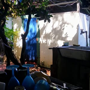 Posledný deň nám Gerard vynesie plastovú práčku so žmýkačkou ku umývadlu a perieme si veci. Voda sa napúšťa z otočnej PVC rúry – od oka. Vypúšťa sa do rúry, ktorá vypúšťa priamo na bralo a potom do mora. Najprv nám káže všetko nahádzať do pracej sekcie, no potom sa mu zdá, že motor nevládze, tak vyberáme polku vecí. Po 12 minútach prehadzujeme mokré prádlo do žmýkacej sekcie práčky a do použitej vody dáme zvyšok. Pri praní sa dozvedáme, že pokazenú bránu nám vlastne hekli vykrádači kúpeľní. Nám nič nechýba, no z kúpeľne na brale zmizli veľké šampóny. Je to celkom haluz, že si niekto dal tu prácu. Železná brána je cez komplikovaný prevodový systém špagátom napojená na 5litrovku vody v kuchyni. Tá cez pozbíjané doštičky zapína svetlo vonku pri vchode, keď sa brána otvára.