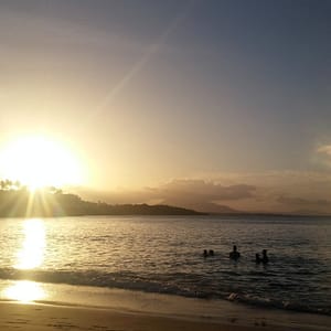Raz večer nás na pláži haltuje mladík pri vodnom banáne, že pôjde loď. Myslíme, že budú ťahať banán do vody, alebo viac na breh, tak mu hovoríme, že to obídeme cez vodu. Nechce ani to. Tak stojíme, zrazu sa od nás vyrúti loď, otočí to v tme chlapík na to šliapne a vyletí až na pláž. S jedným odrazom dokopy preskočí možno aj 10 metrov od vody. Pozeráme na to ako puci. Chápeme, že v žiadnom pásme tade nebolo vhodné prechádzať.