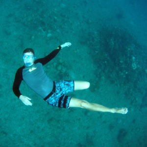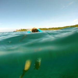 Niekedy je slabšia viditeľnosť alebo sirupovitá voda ako sa miešajú rôzne teplé prúdy. Na dne je pri brehu bordel po turistoch – plechovky a fľaše a ďalej je popri našom brale vcelku dosť oblečenia po zemi. Asi je to bordel po hurikáne, ako to ľuďom poodfúkavalo zo šnúr.