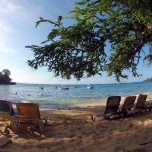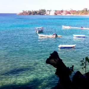 V Sosúa vystupujeme na konečnej – las Charmis, a na prvý krát trafíme do nášho AirBnB rustikálneho domu na brale nad plážou. Je to ešte krajšie ako na fotkách. More pod nami je akurát nádherne tyrkysové. Zhodíme si veci do izby a prášime na pláž. Po prechádzke skoro celou plážou večeriame na našom konci pláže, v podniku Tiburon (žralok). Konečne máme seafood. Máme chobotnicu (450) a riadne veľkú rybu (825) a výdatne obloženú platanmi – tie museli ísť kúpiť, lebo nemali. Ryba je fantastická, ledva ju do seba napraceme.