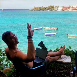 Radi sa z našej skaly pozeráme, ako ľudia sa vlnia v mori s drinkami, je to čistá pohoda dovolenková. Láka to človeka zísť dole medzi nich. Čo aj podvečer robievame.