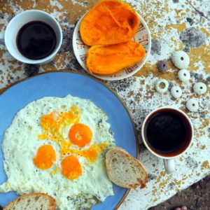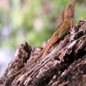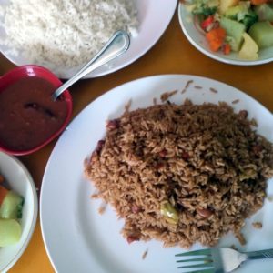 Na raňajky máme slušný krém brulé a veľa banánov. Tie sú tu naozaj populárne. Videli sme chlápka ako si jeden doniesol so sebou a keď mu doniesli menúčko vylúpol si ho a položil na tanier. Raňajkujeme za stolíkom postavenom z kusu omietky na ohrdzavenej, roxorovitej konštrukcii – nožičkách. Obzeráme jašterice, ktoré vyzerajú skoro ako žaby. Skáču namiesto chodenia, telo majú žabovité, len majú jašteričie chvosty. Samec sa rozbehne za samičkou a vyťahuje na ňu červený podbradok.