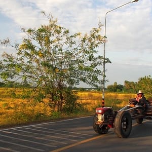 Ukázalo sa (naštastie) že opak nebol pravdou a po chvíli sa už vyškierame do objektívu. Za cenu zrovnateľnú s tou prievidzskou (150B každý) sa dostávame po asi polhodinke raňajkovania k 15 fotočkách /v PD sú 4/… to bude na veľa víz… Normálne si fotky na víza nosíme so sebou, teraz to ale žiaľ nevydalo. V strednej Amerike ich nebolo treba, tu sme zabudli. S čerstvým fotom poď ho na stanicu, kde čakáme viac ako hodinu v pristavenom pikape kým vyrazíme. Ide s nami aj nejaký ožranko, ktorý je zo začiatku vtipný (aspoň teda domáci sa bavia) a chytá nás za kolená a pochechtáva sa, ale nakoniec je to už doterný a keď mu vysvetľujem, aby s tým prestal, stíchne celá korba. Potom mu už tak nie je do reči a keď vystupuje zabudne si aj kukuricu aj kávu. Cestou postupne zastavujeme natankovať 9 litrov benzínu, naložiť 130 litrov benzínu v 5 kanistroch a najesť sa. Dávame si sladké ryžové guľky, ktoré splachujeme ľadovou kávou, každé po 20B.