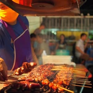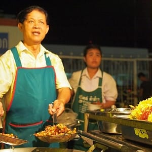 Na trhu dáme fajné sushi a zapražené dary mora v niečom čo sa tvárilo ako zemiaková placka, ale moc zemákov tam asi nebolo. Stánkari sú milí a usmievaví. Sme tu jediní bieli, mladí si na nás cvičia angličtinu.