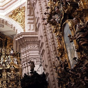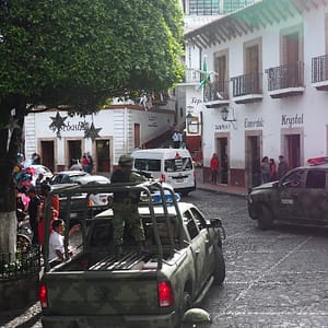 Barokový kostol Santa Prisca je magický a je tu veľa sprievodcov ponúkajúcich svoje služby. Bielych turistov tu prakticky nevidíme. Pochutíme si na kukurici na paličke omastenej maslom, ocitrónovanej a pokorenenej čili. Potom si ešte dáme zopár vegetariánsky picadil – tortičkovité slané koláče. Kým čakáme na jedlo ku K si prisadnú turisti, čo s nami prileteli do Mexika. A motáme sa mestečkom. Taxco je známe striebornými výrobkami ale my máme dosť zlý pocit z čínsky vyzerajúcich kôp nezaujímavého a drahého striebra. Hlavné námestíčko je dosť malé a plné ľudí. Všade mrte domorodých turistov z mesta.